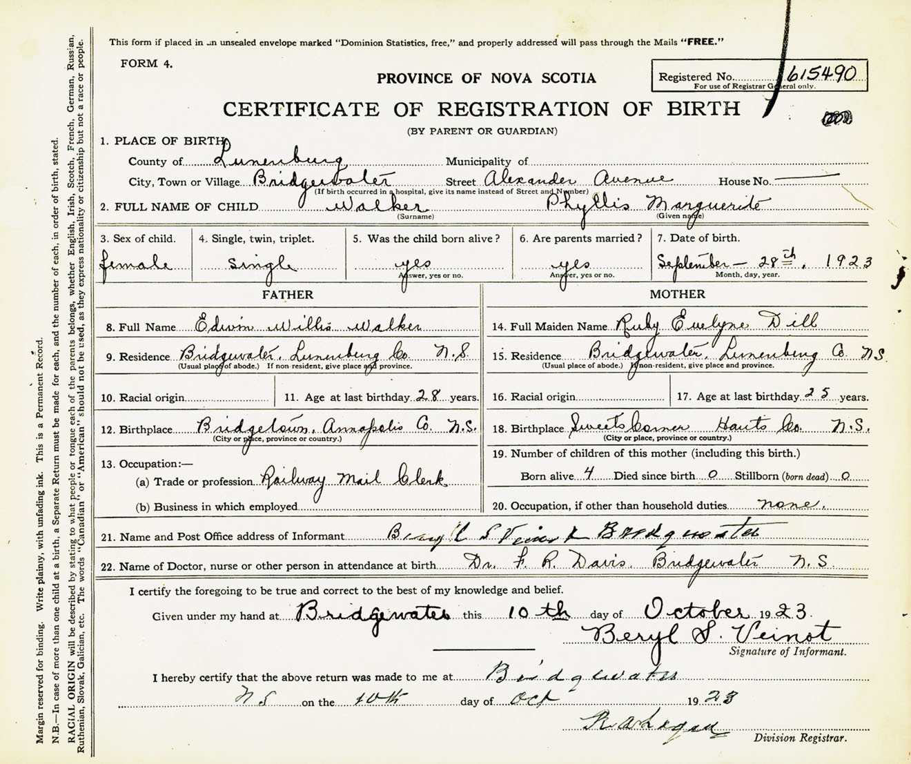Female Birth Registration: Year: 1923 number: 61500490