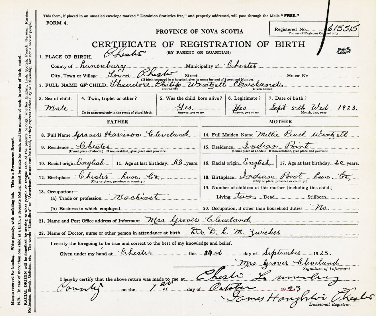 Male Birth Registration: Year: 1923 number: 61500515