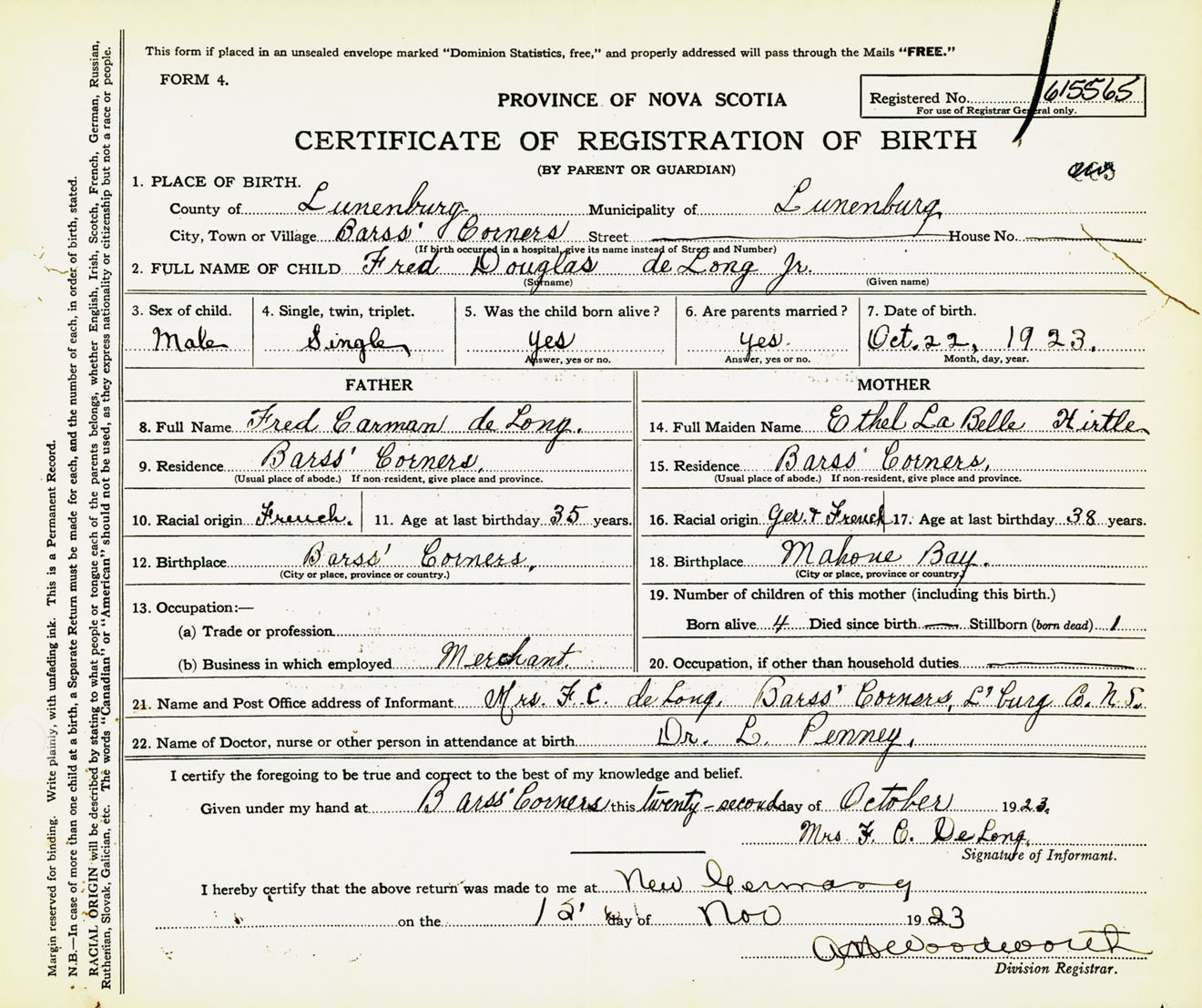 Male Birth Registration: Year: 1923 number: 61500565