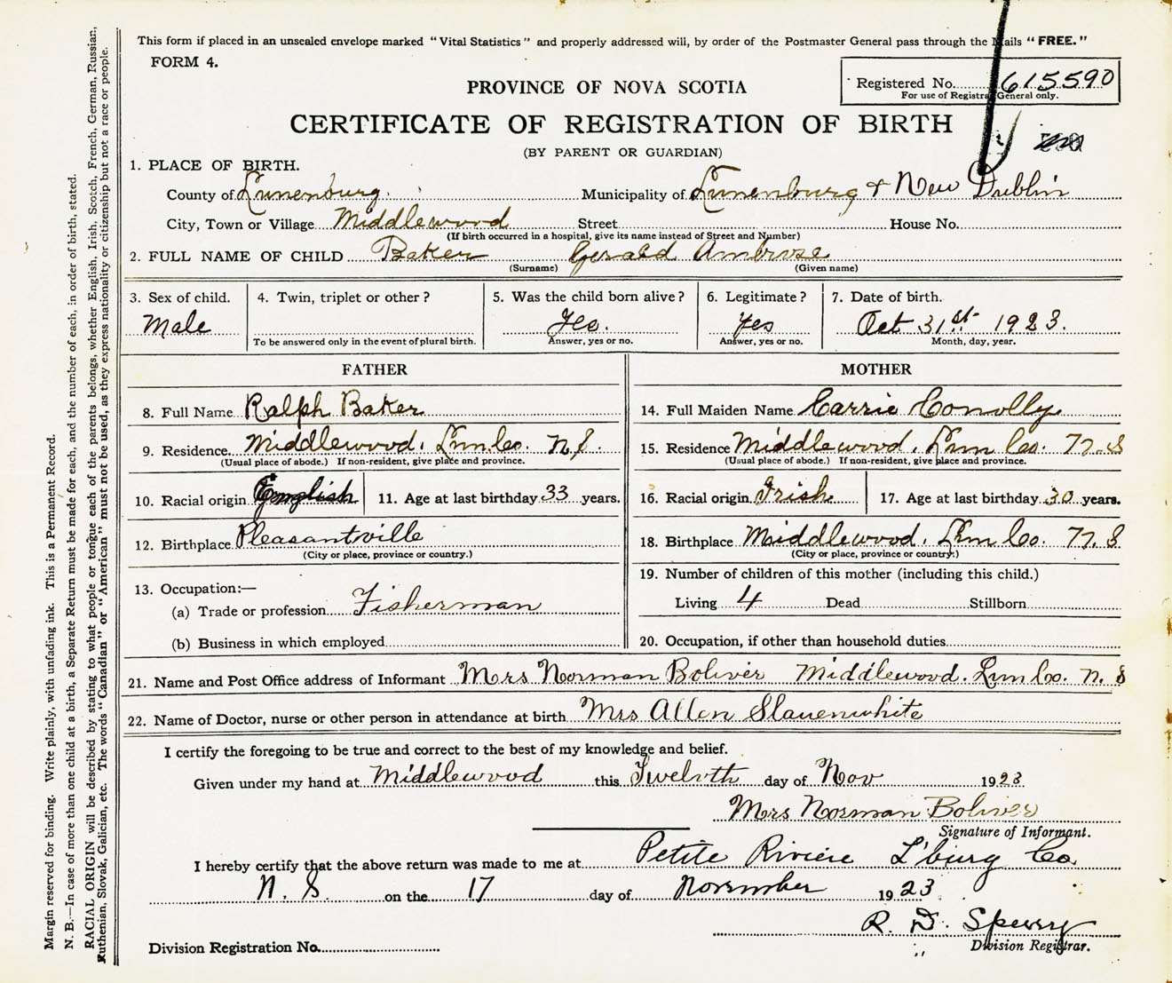 Male Birth Registration: Year: 1923 number: 61500590