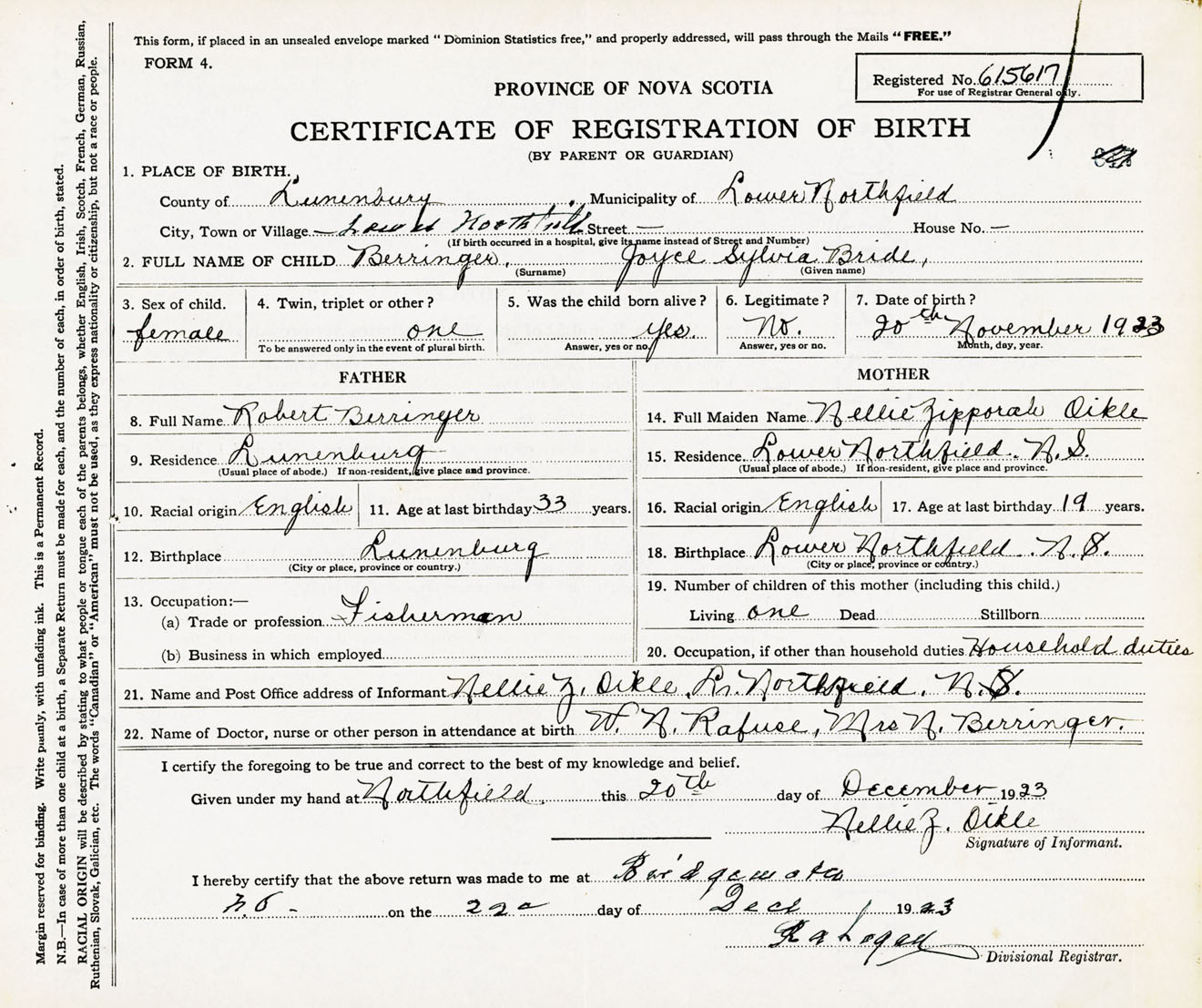 Female Birth Registration: Year: 1923 number: 61500617