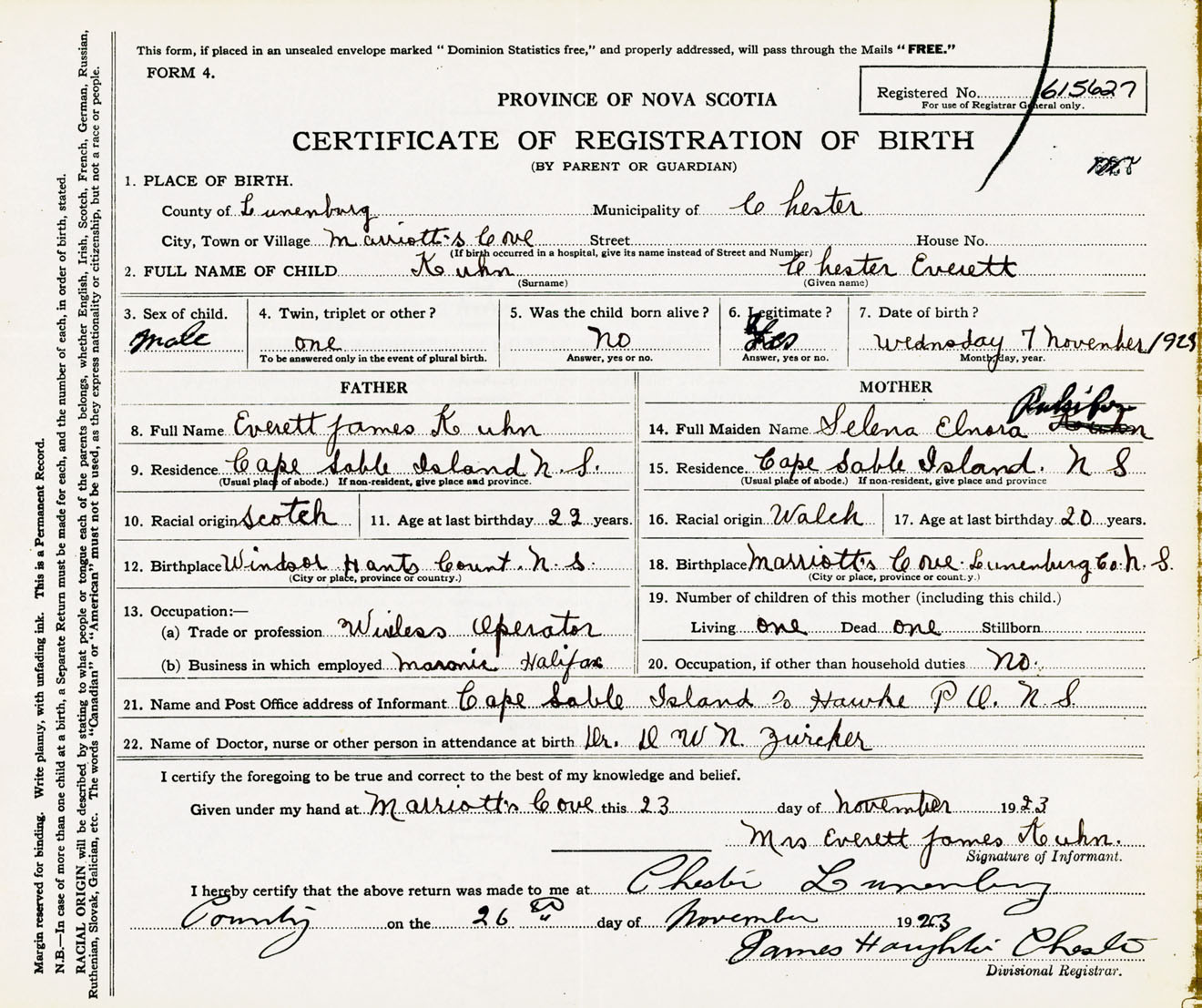 Male Birth Registration: Year: 1923 number: 61500627