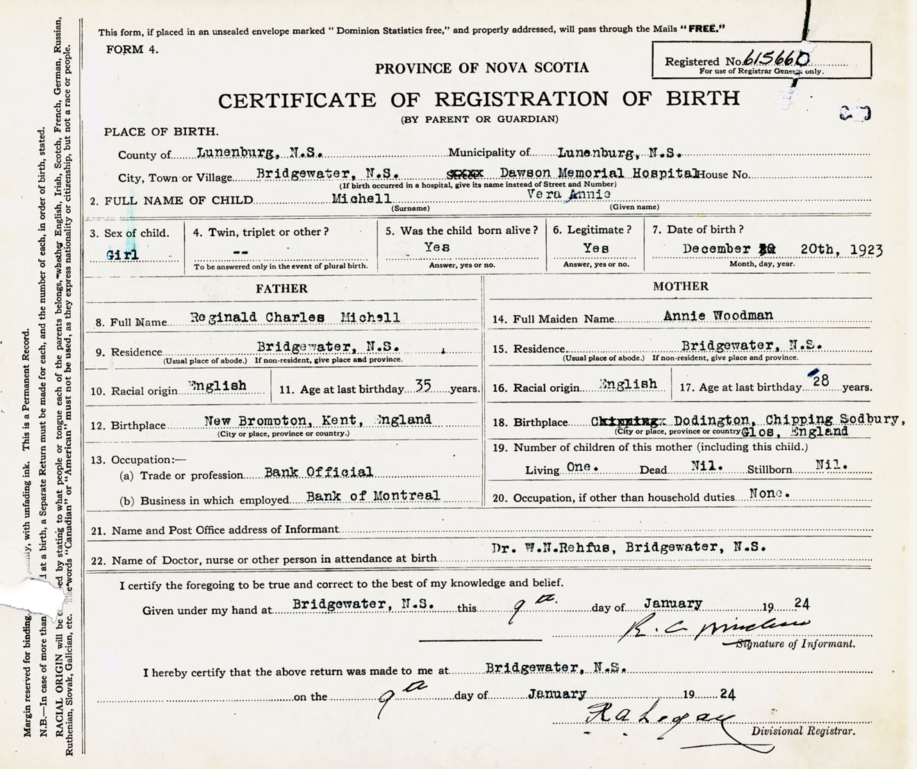 Female Birth Registration: Year: 1923 number: 61500660