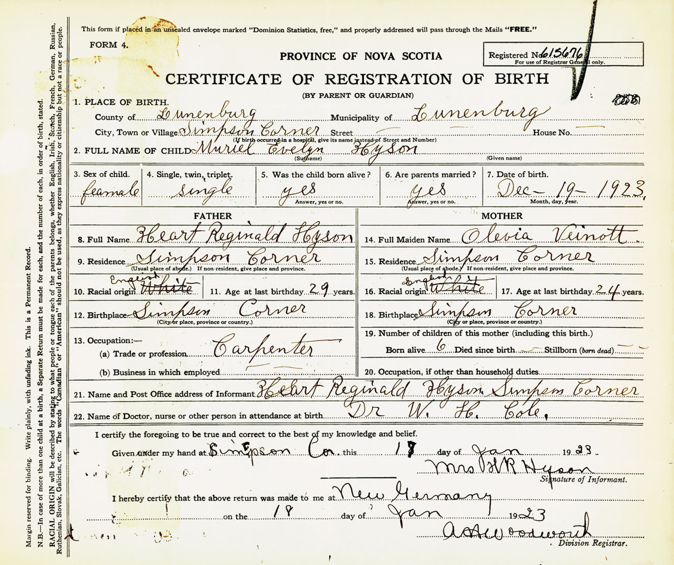 Female Birth Registration: Year: 1923 number: 61500676