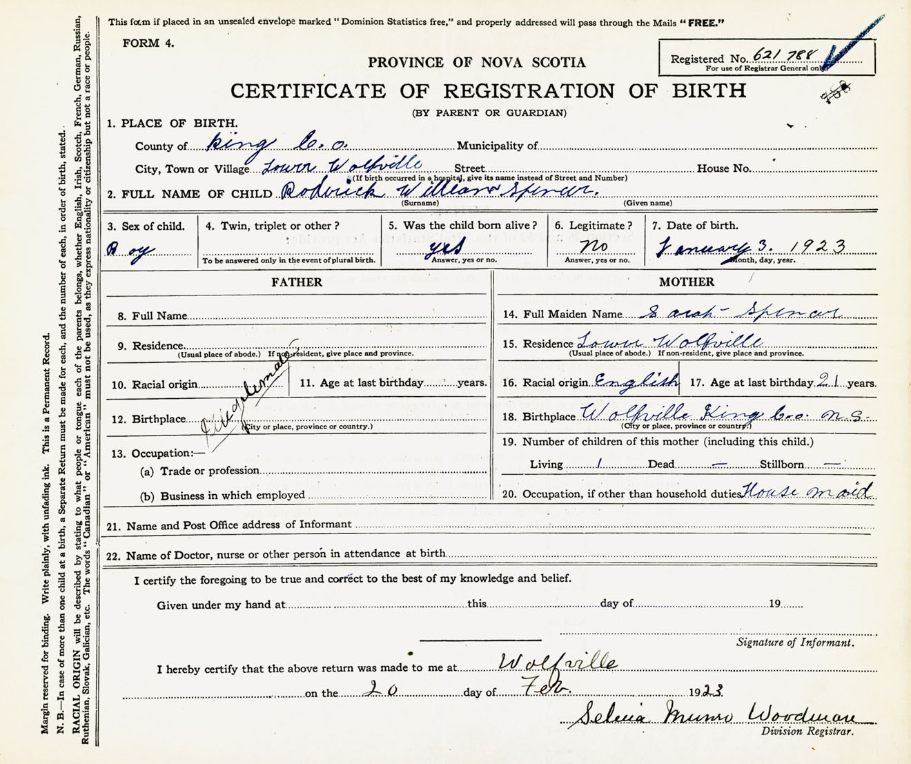 Male Birth Registration: Year: 1923 number: 62100788