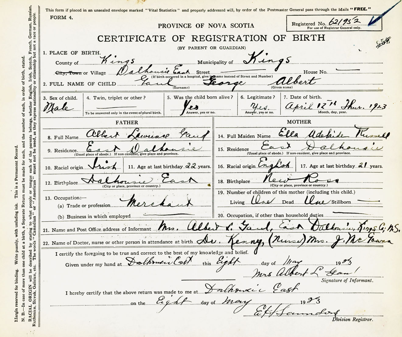 Nova Scotia Archives — https://archives.novascotia.ca/vital-statistics/birth/?ID=438030
