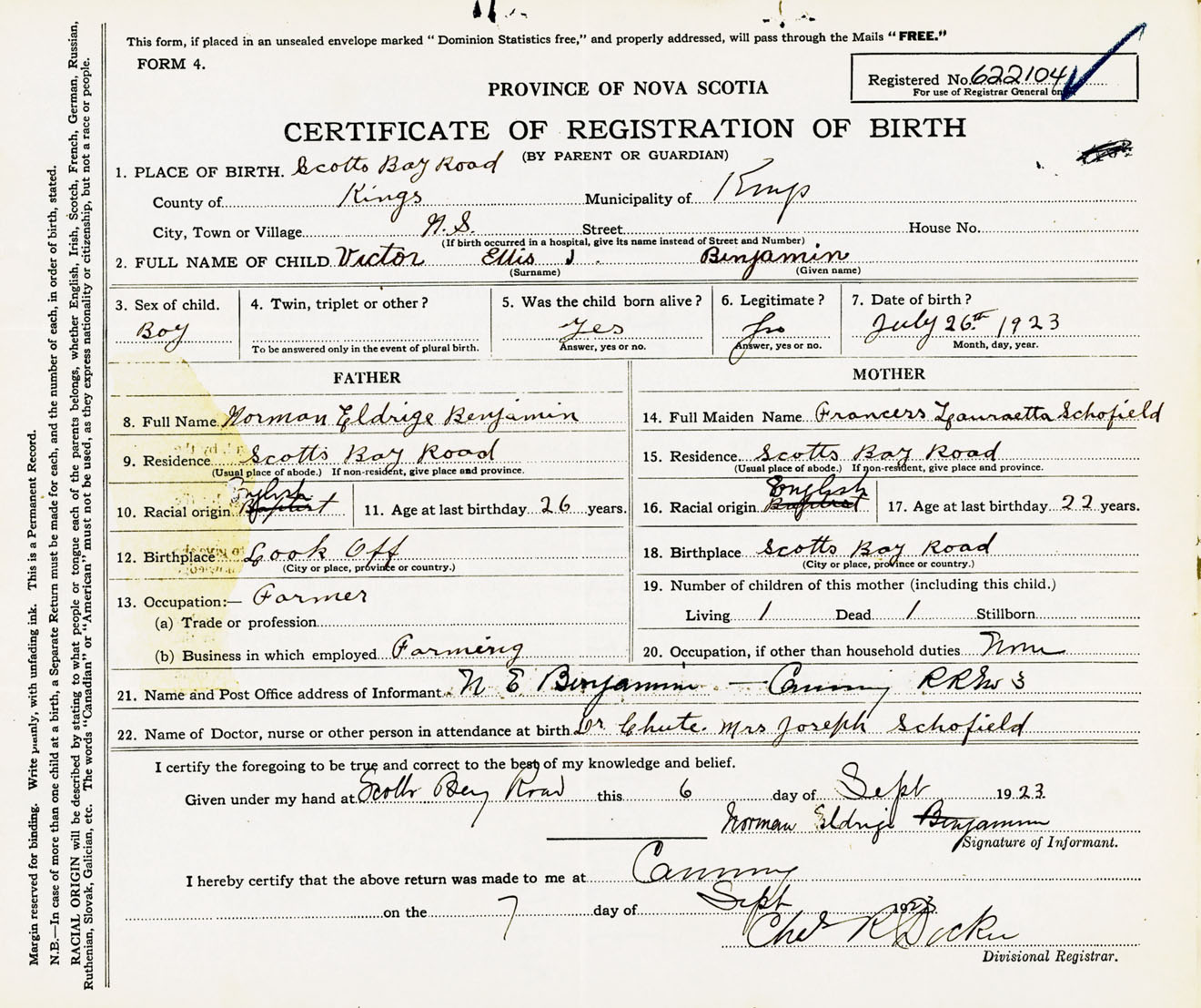Male Birth Registration: Year: 1923 number: 62200104