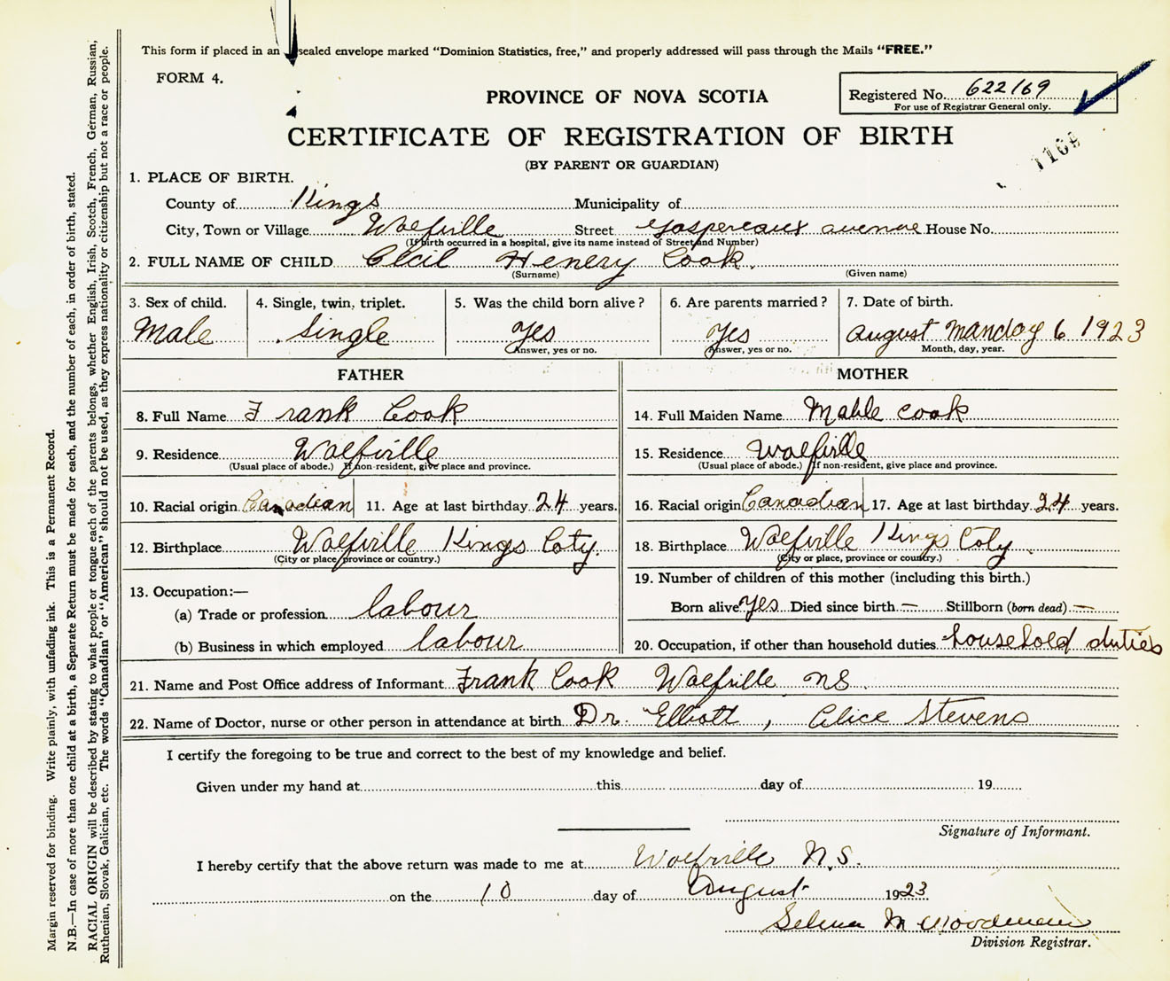 Male Birth Registration: Year: 1923 number: 62200169
