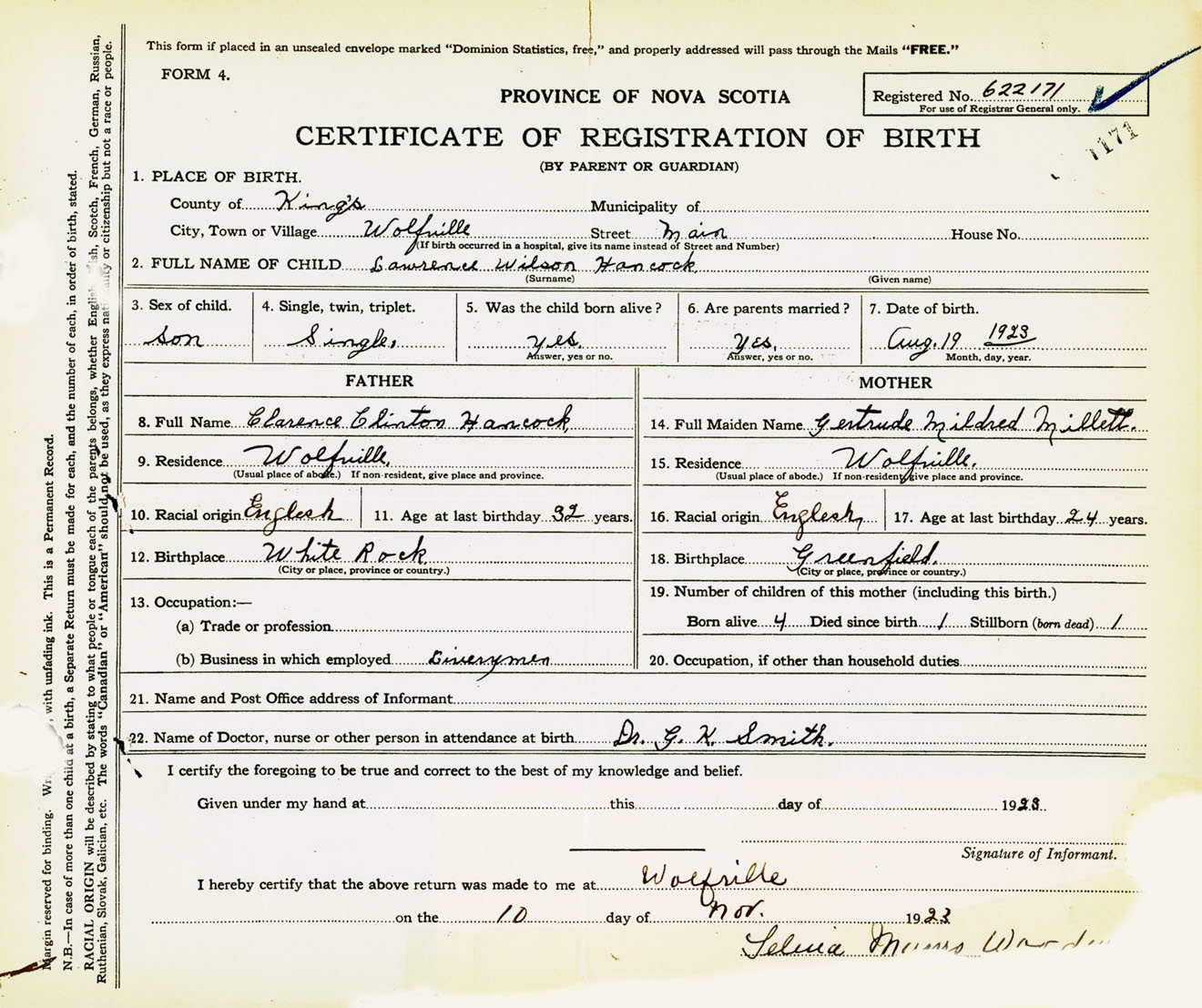 Male Birth Registration: Year: 1923 number: 62200171