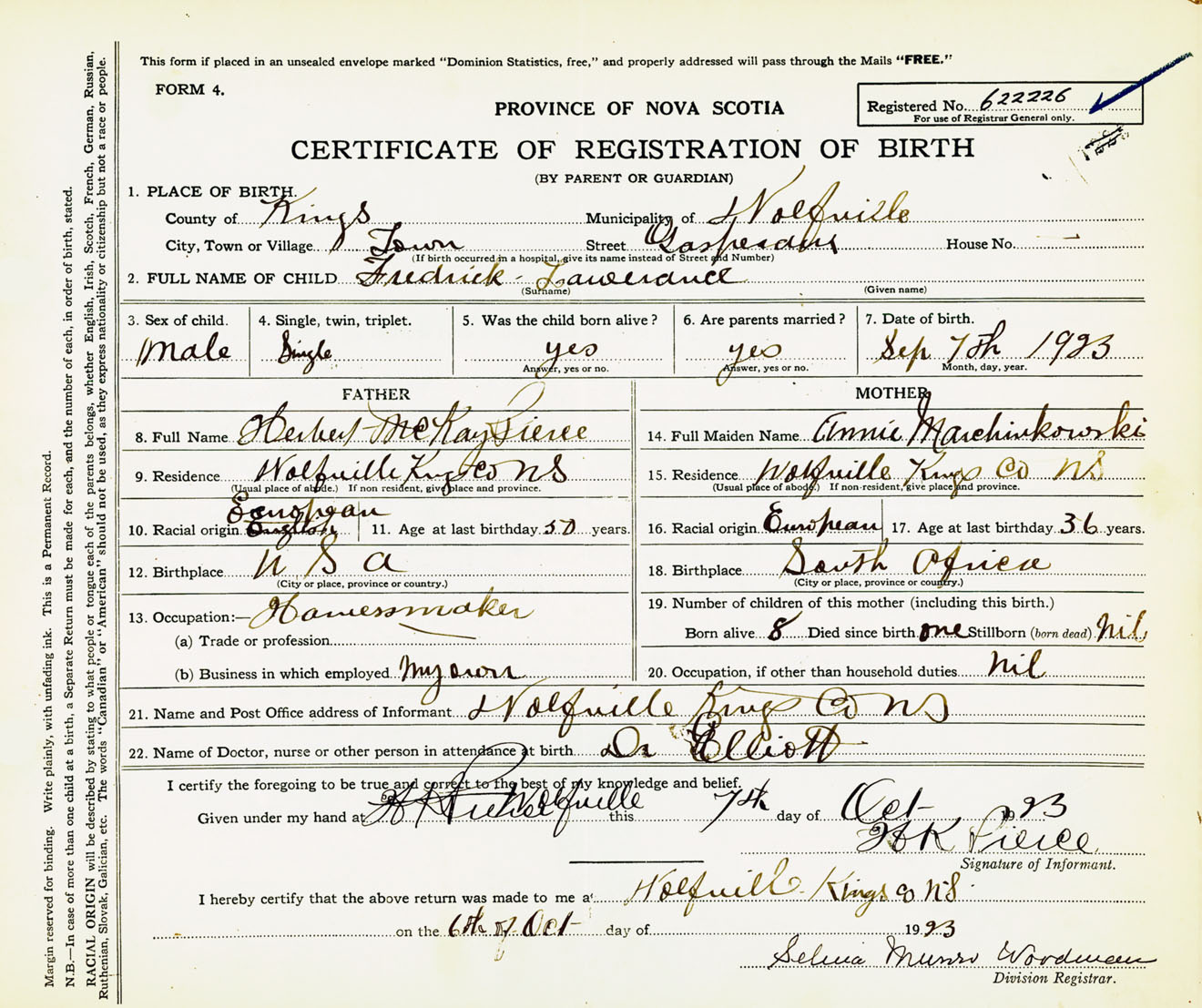 Male Birth Registration: Year: 1923 number: 62200226