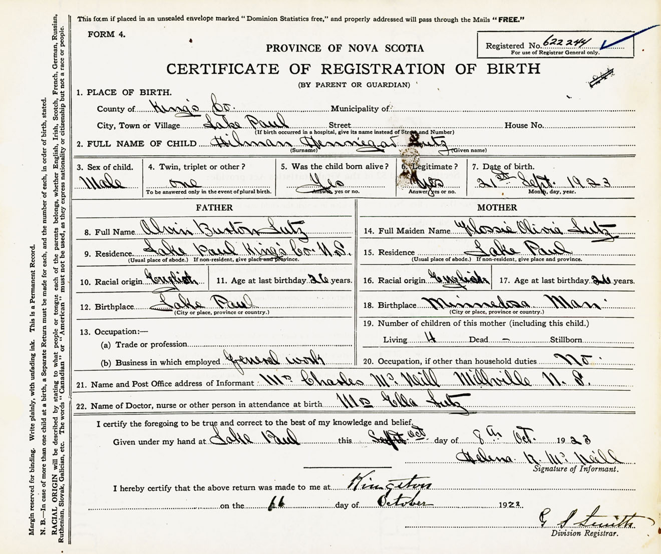 Male Birth Registration: Year: 1923 number: 62200244
