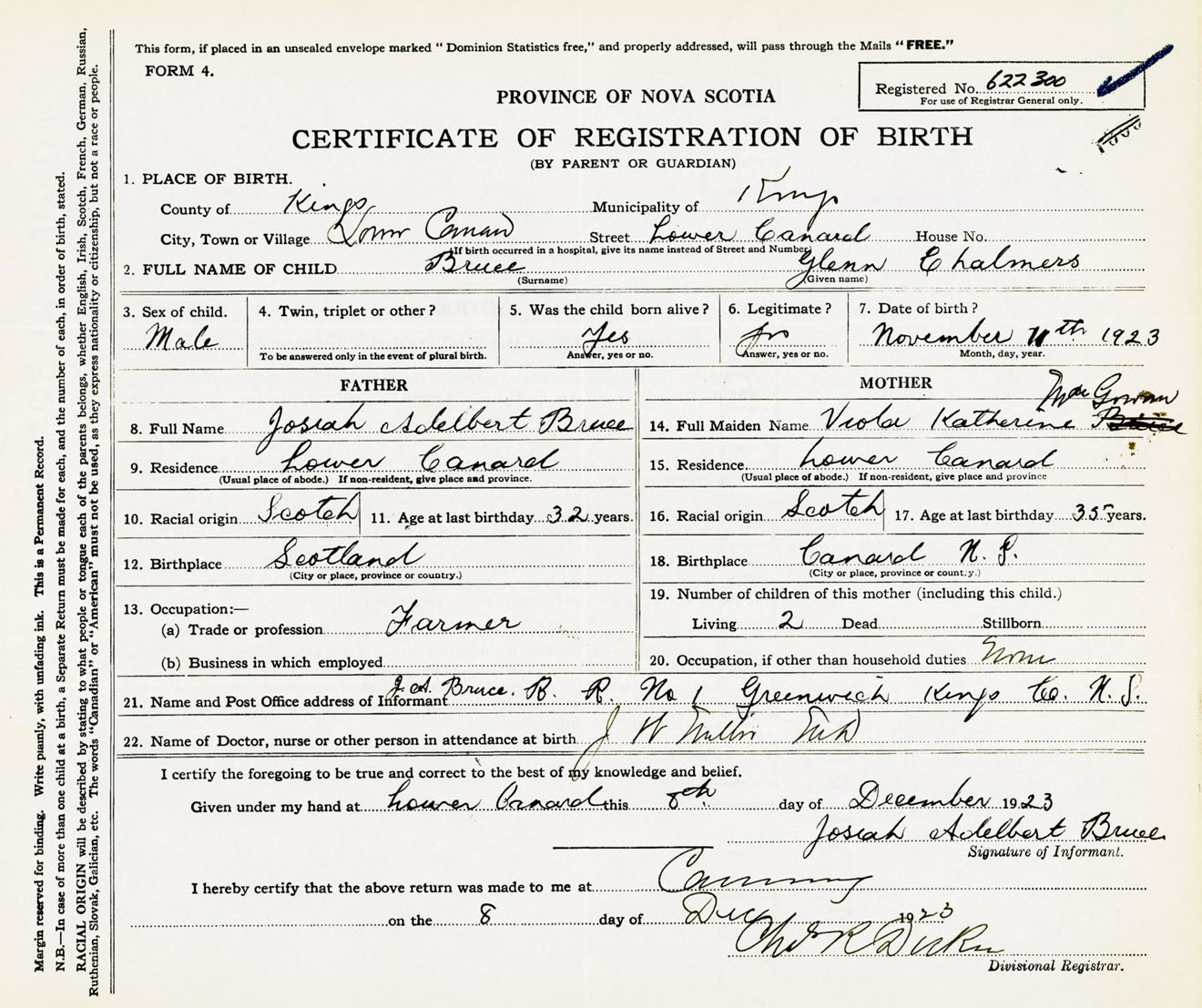 Male Birth Registration: Year: 1923 number: 62200300