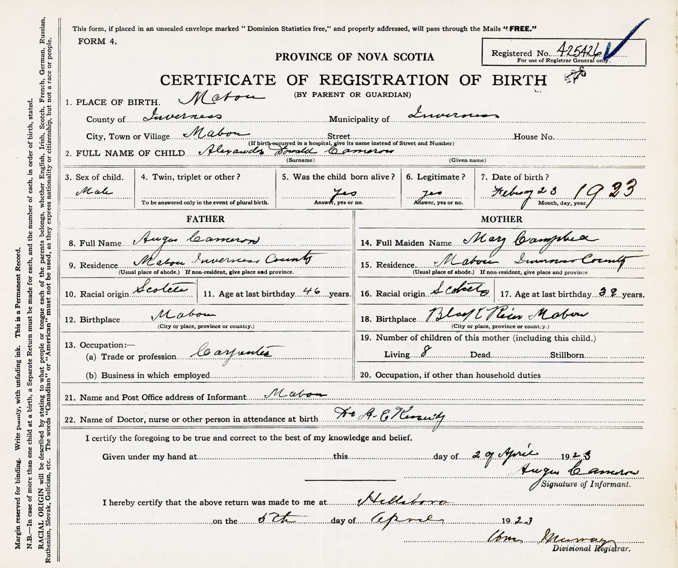 Nova Scotia Archives — https://archives.novascotia.ca/vital-statistics/birth/?ID=438506