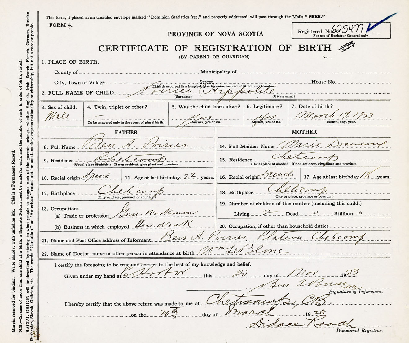 Male Birth Registration: Year: 1923 number: 62500477
