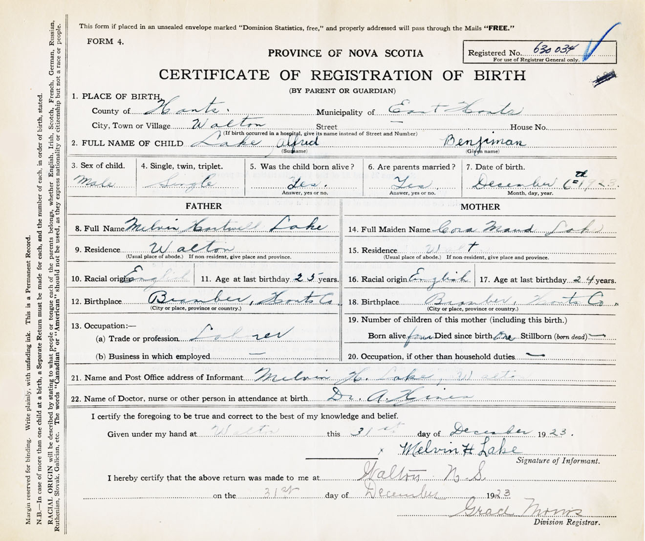 Male Birth Registration: Year: 1923 number: 63000034
