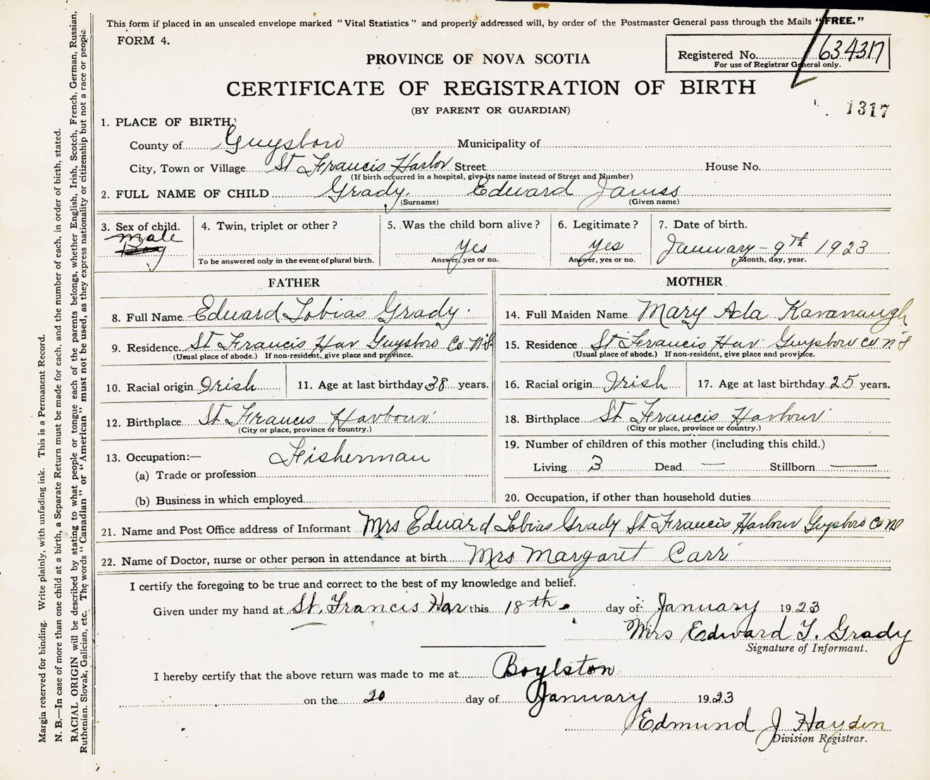 Male Birth Registration: Year: 1923 number: 63400317