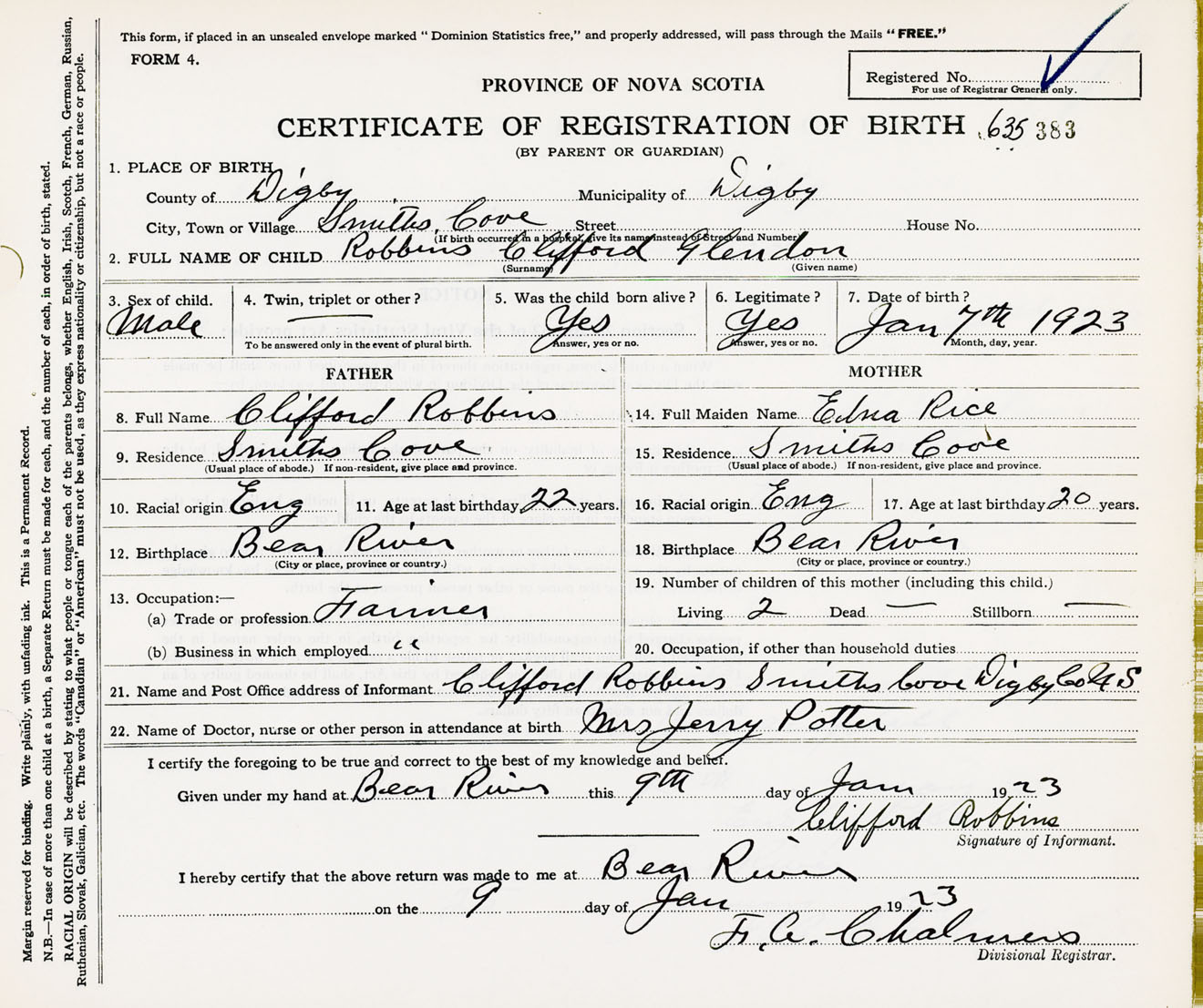 Male Birth Registration: Year: 1923 number: 63500383