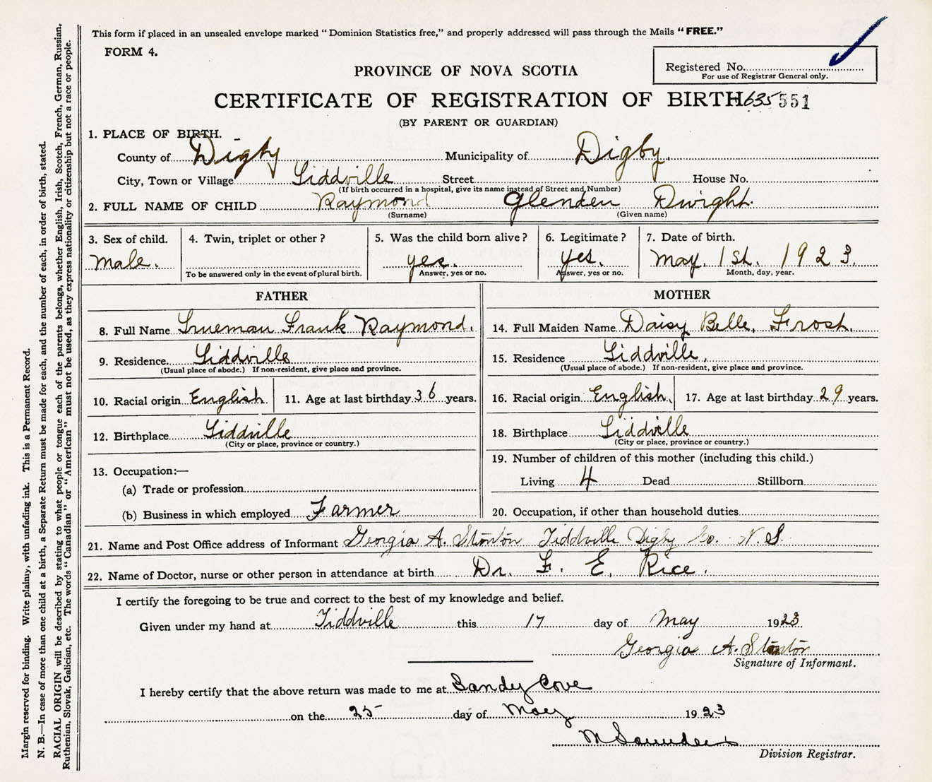 Male Birth Registration: Year: 1923 number: 63500551