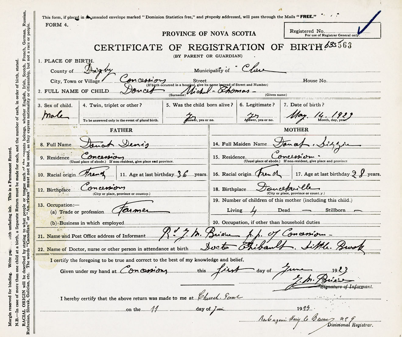 Male Birth Registration: Year: 1923 number: 63500563