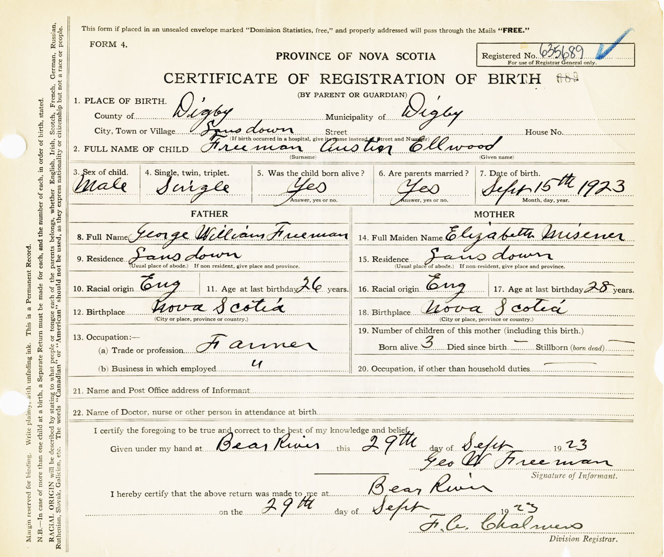 Male Birth Registration: Year: 1923 number: 63500689