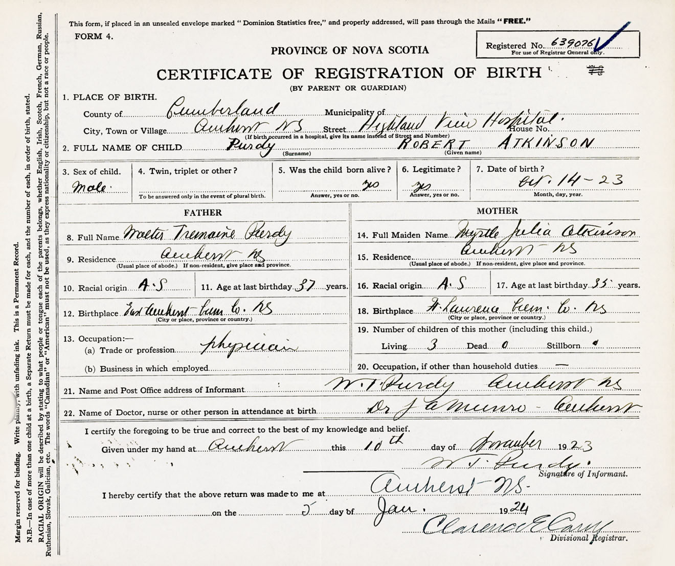 Male Birth Registration: Year: 1923 number: 63900076