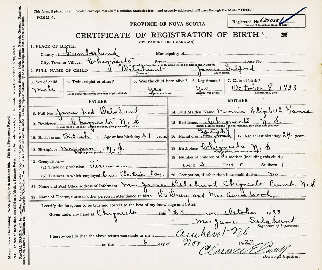 Male Birth Registration: Year: 1923 number: 63900085
