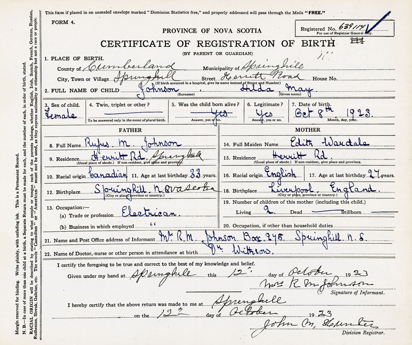 Nova Scotia Archives — https://archives.novascotia.ca/vital-statistics/birth/?ID=440126