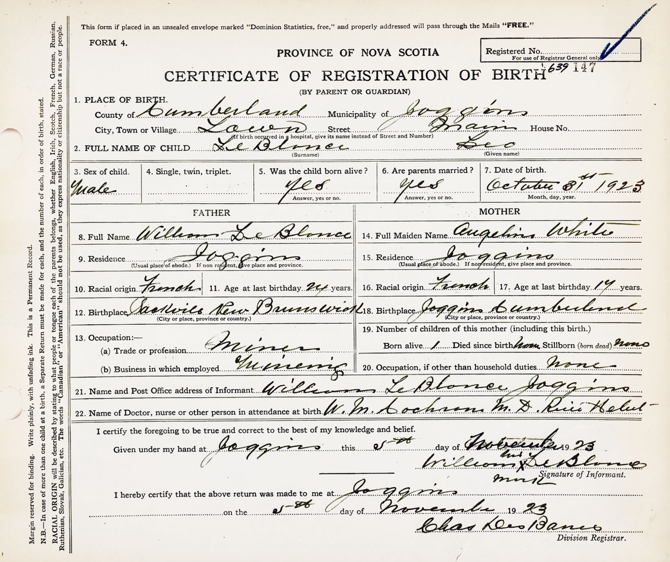 Male Birth Registration: Year: 1923 number: 63900147