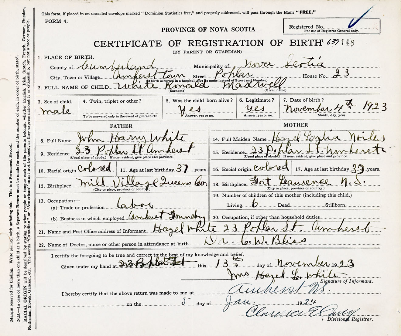 Male Birth Registration: Year: 1923 number: 63900148