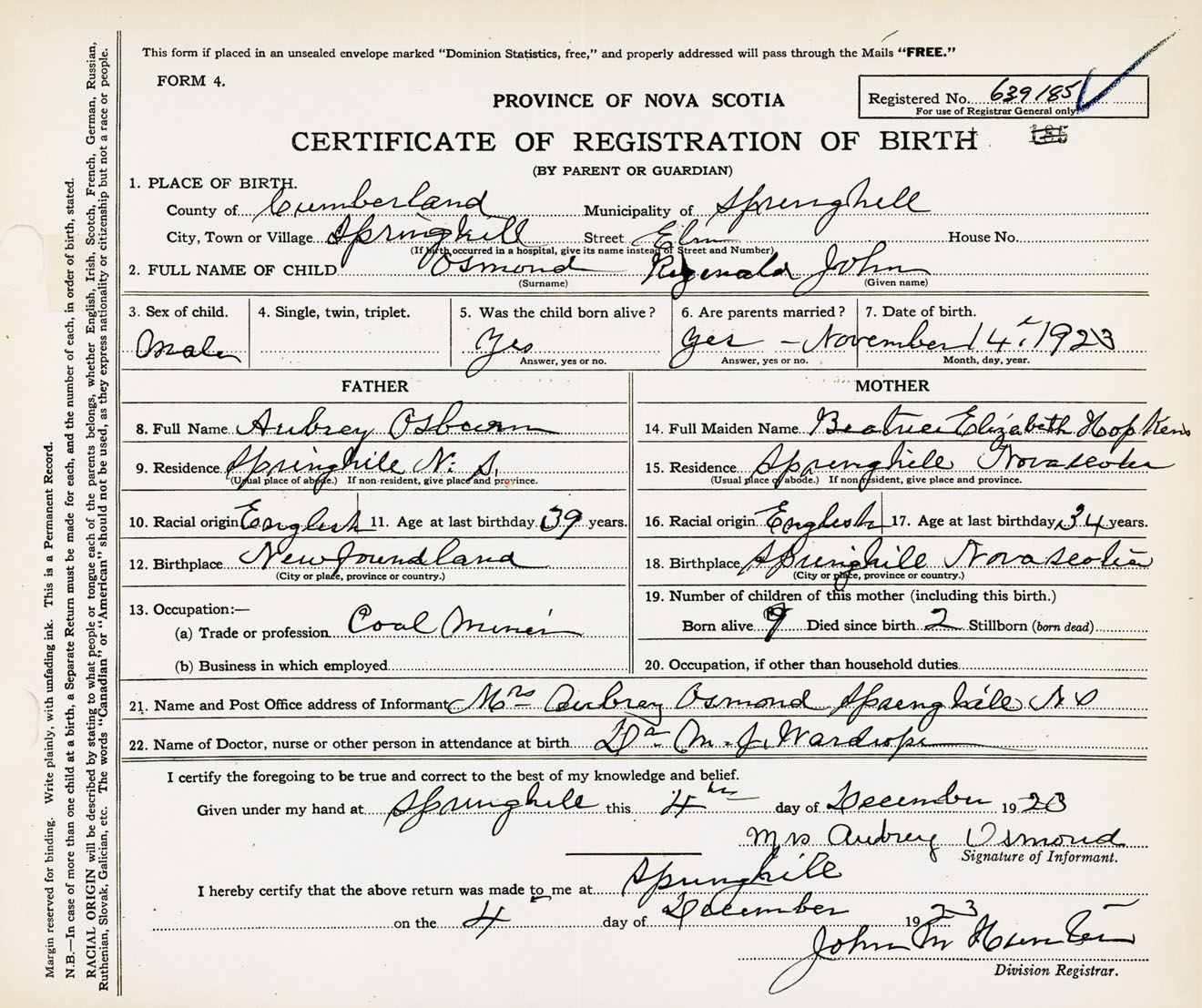 Male Birth Registration: Year: 1923 number: 63900185