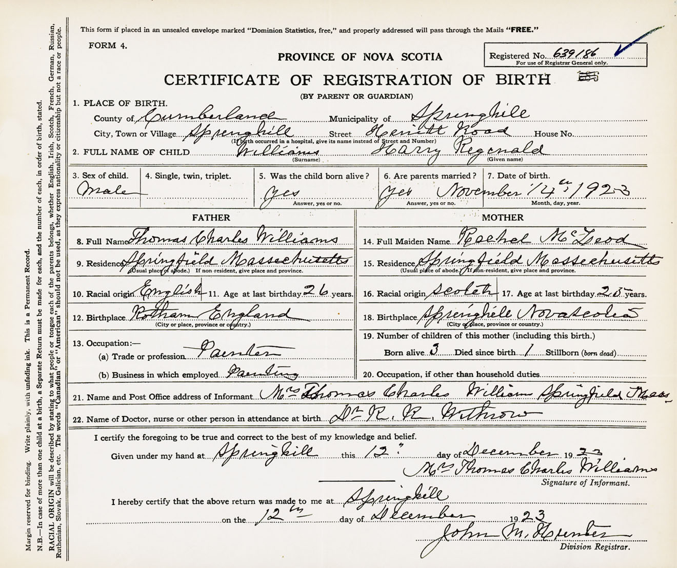 Male Birth Registration: Year: 1923 number: 63900186