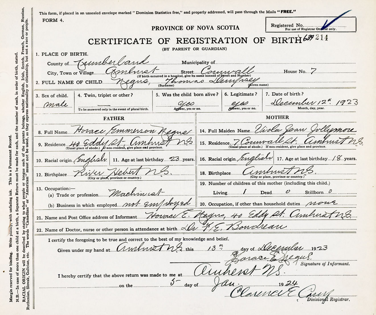 Male Birth Registration: Year: 1923 number: 63900214