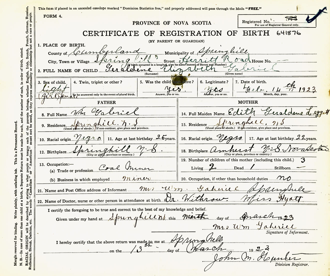 Female Birth Registration: Year: 1923 number: 64100876