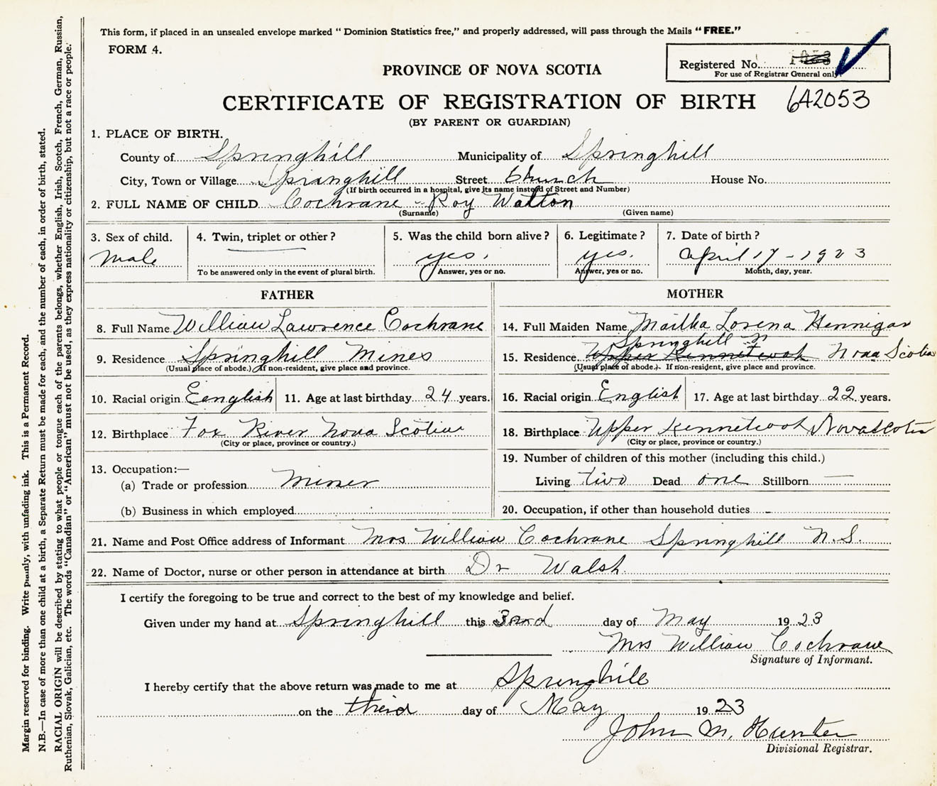 Male Birth Registration: Year: 1923 number: 64200053