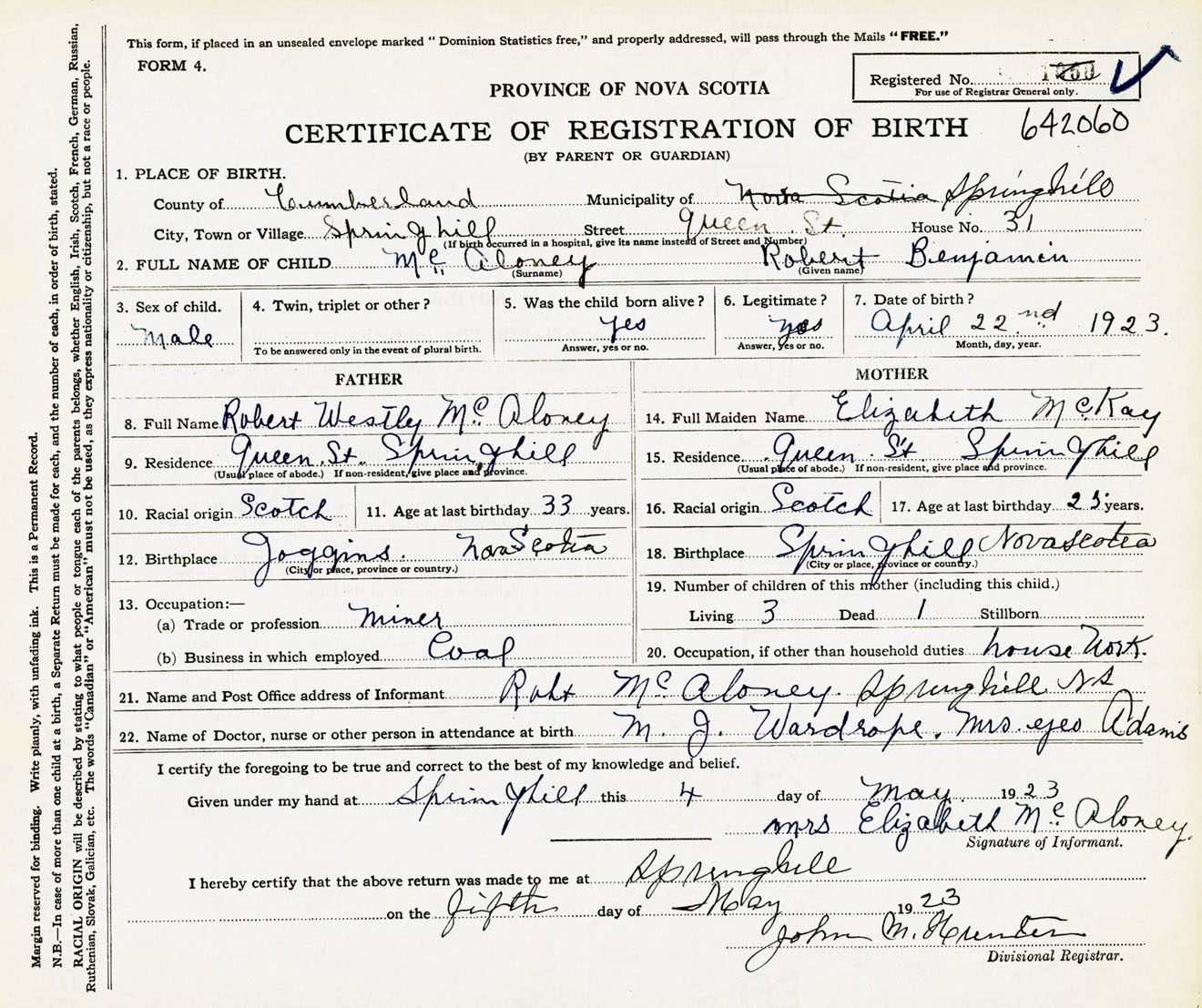 Male Birth Registration: Year: 1923 number: 64200060