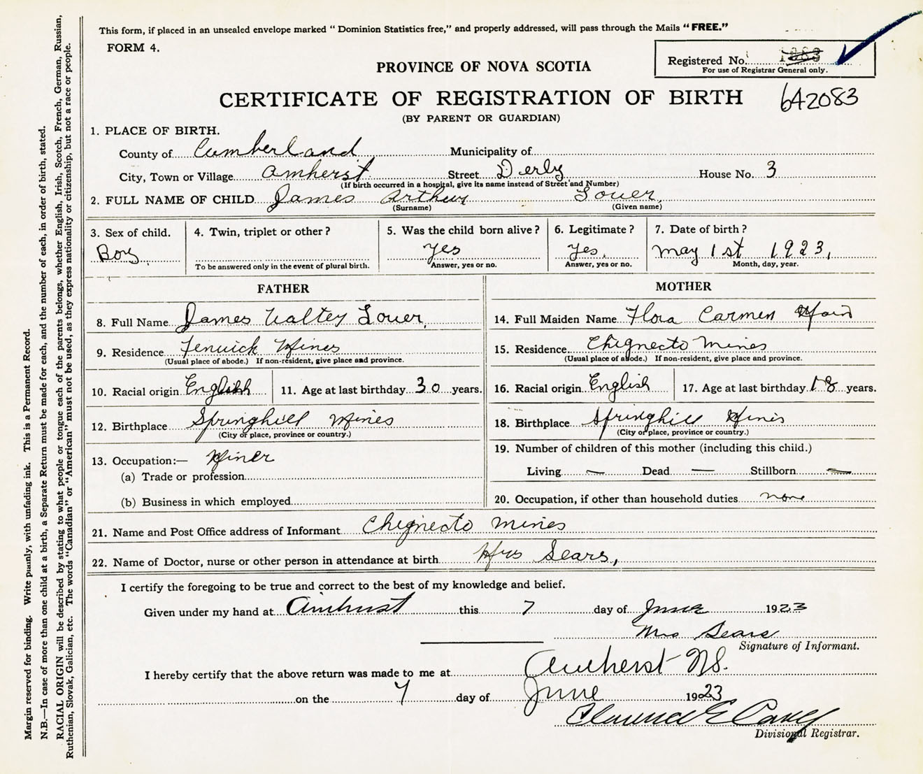 Male Birth Registration: Year: 1923 number: 64200083