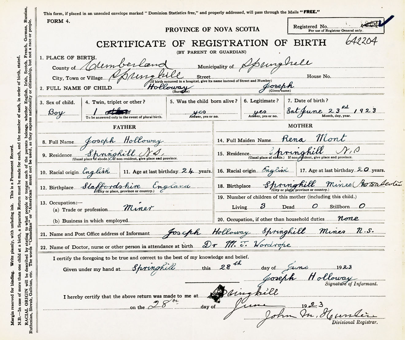 Male Birth Registration: Year: 1923 number: 64200204