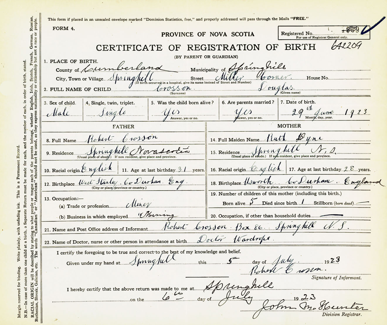 Male Birth Registration: Year: 1923 number: 64200209