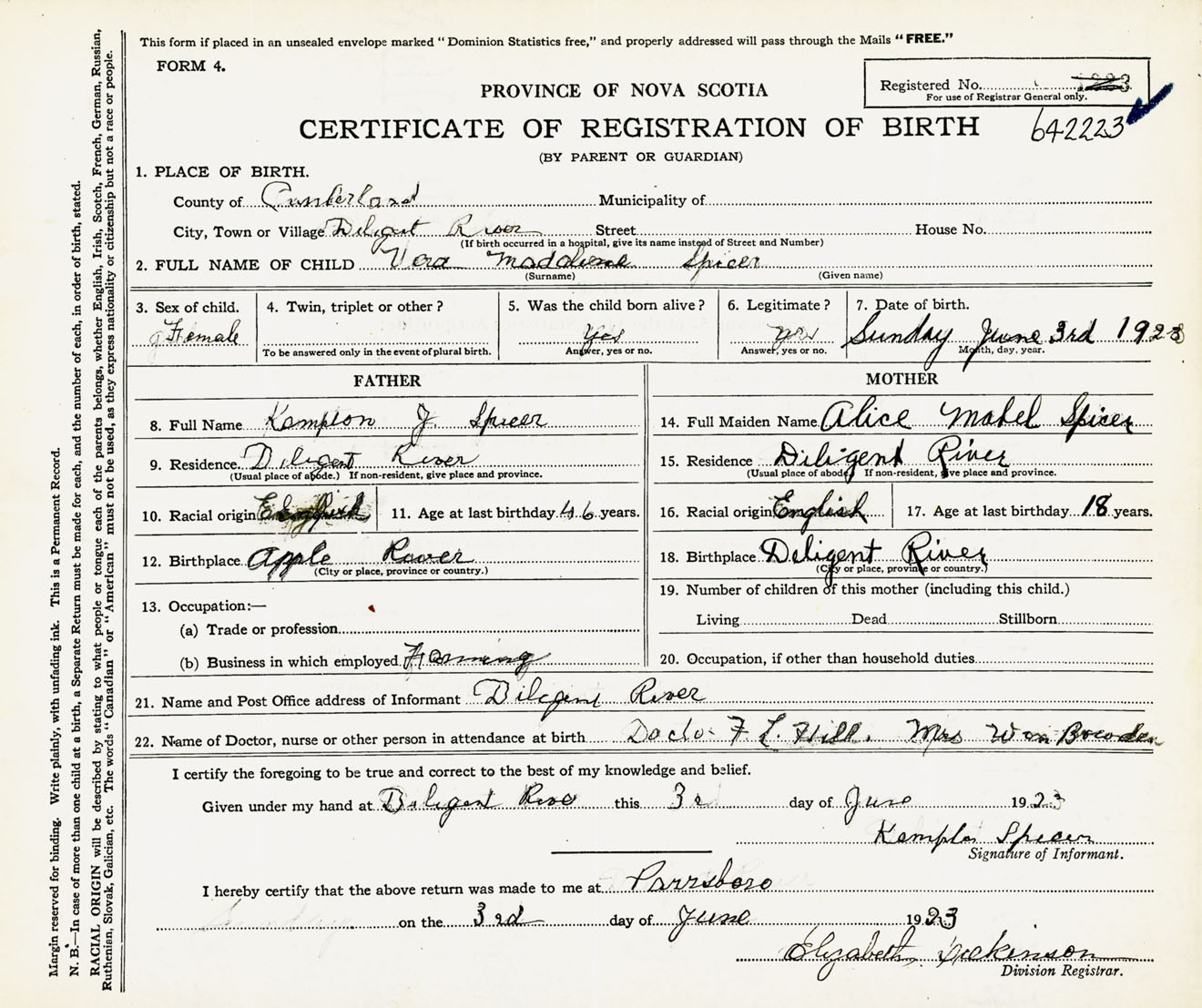 Female Birth Registration: Year: 1923 number: 64200223