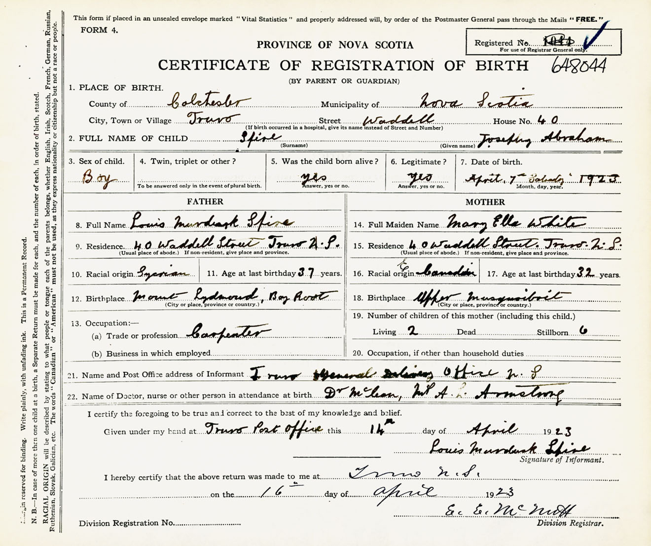 Nova Scotia Archives — https://archives.novascotia.ca/vital-statistics/birth/?ID=441143