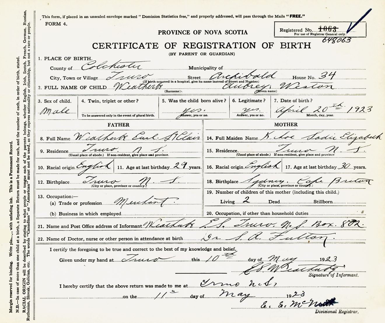 Nova Scotia Archives — https://archives.novascotia.ca/vital-statistics/birth/?ID=441162