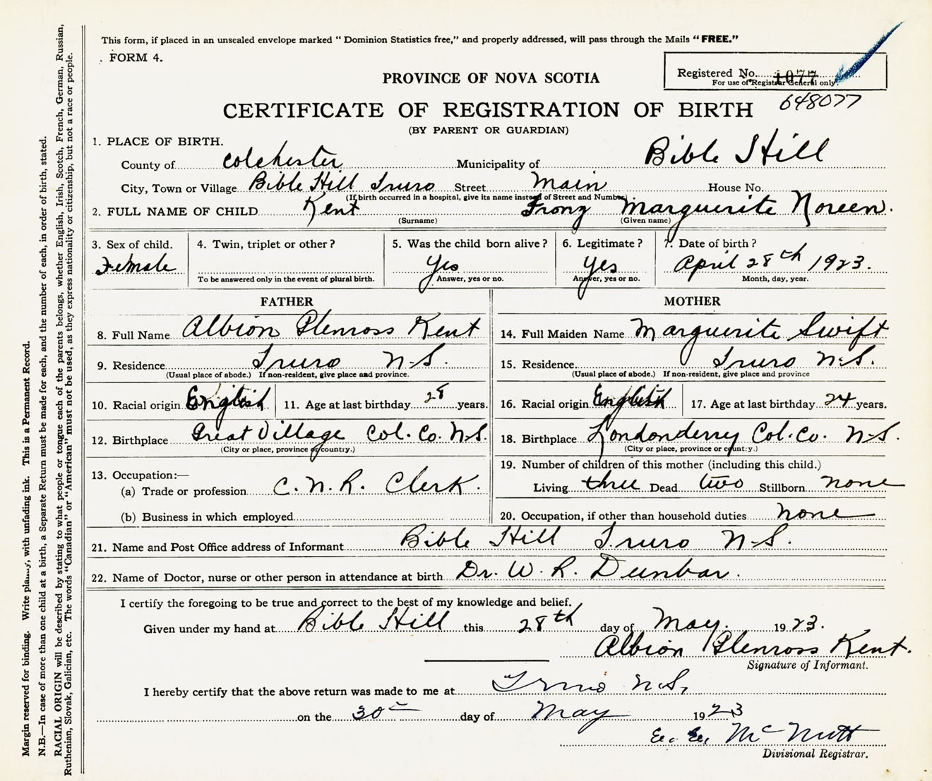 Female Birth Registration: Year: 1923 number: 64800077