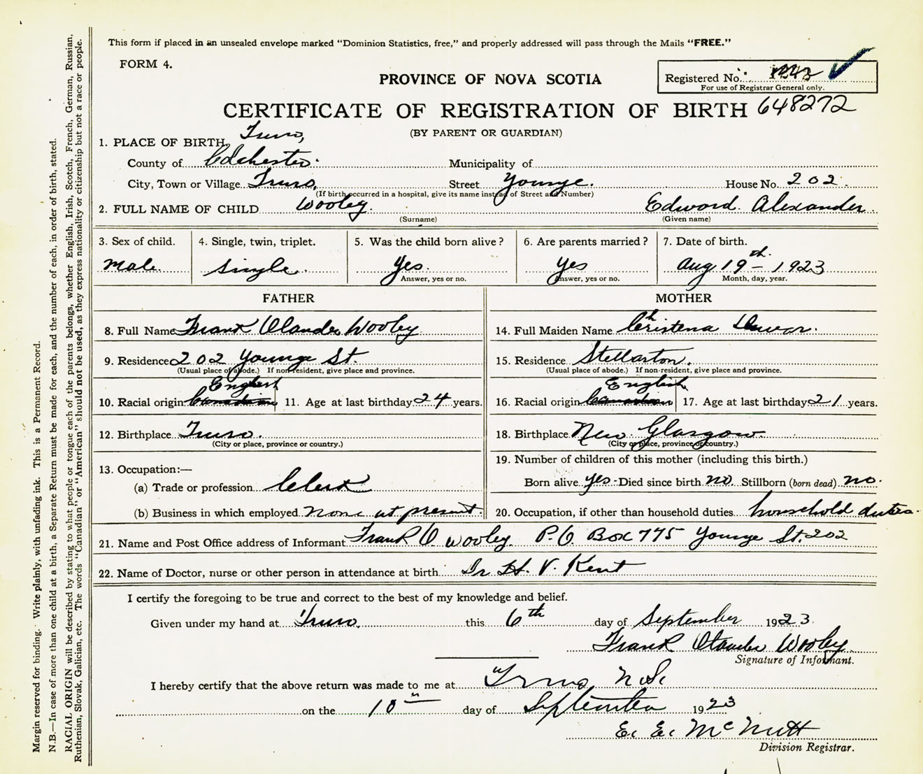 Male Birth Registration: Year: 1923 number: 64800272