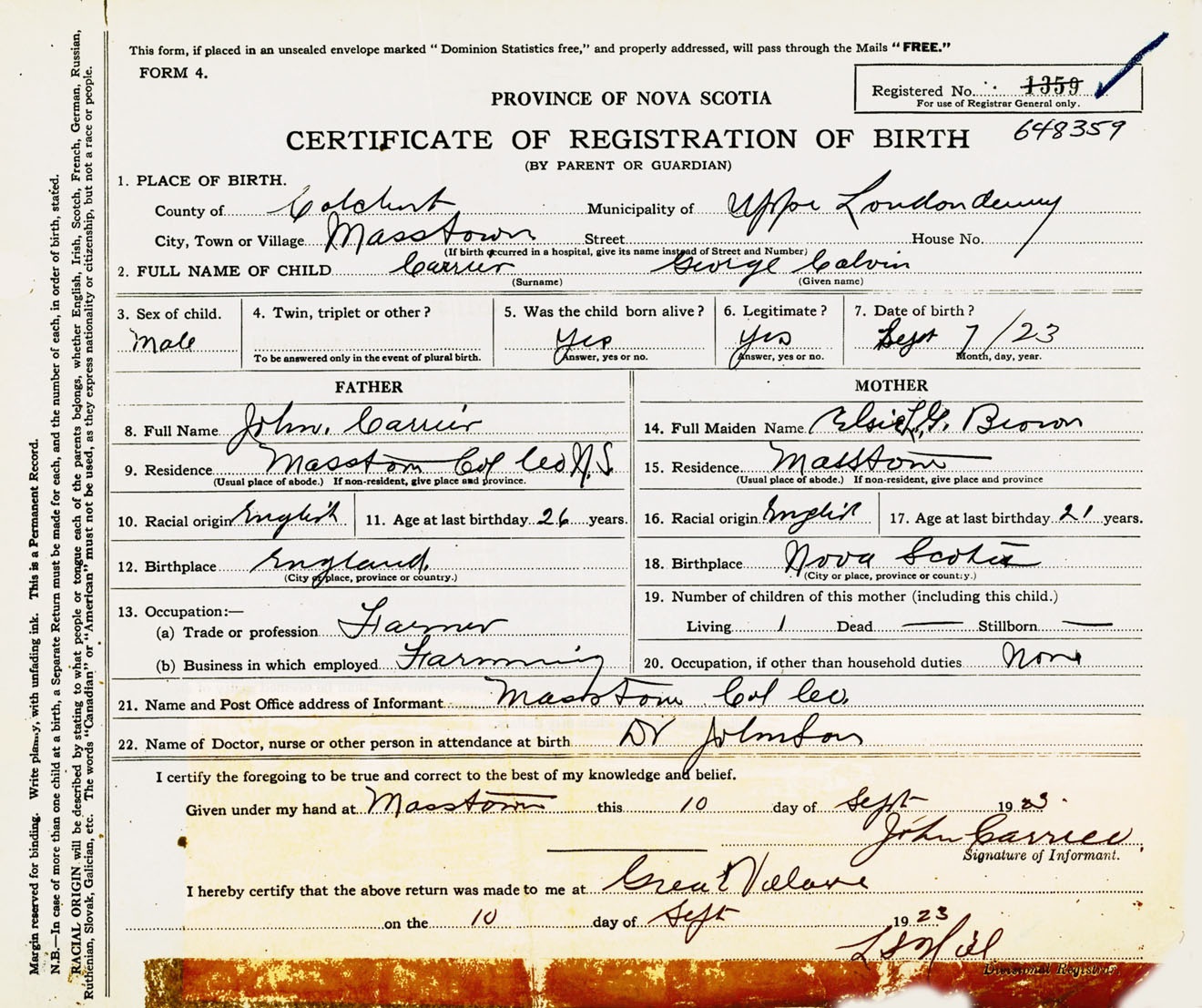 Nova Scotia Archives — https://archives.novascotia.ca/vital-statistics/birth/?ID=441458