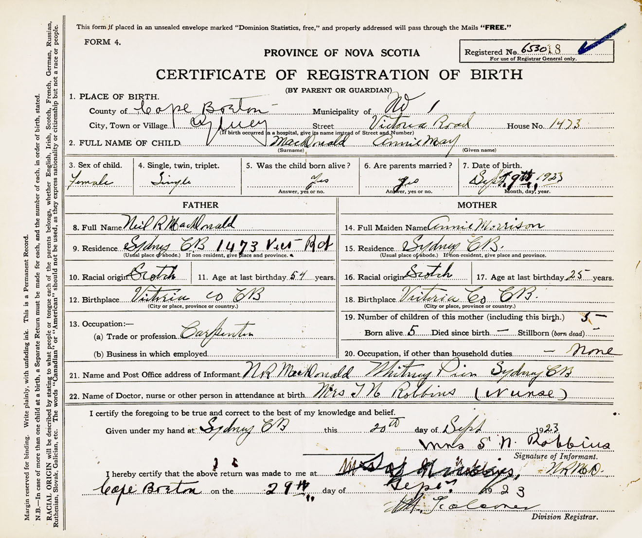 Nova Scotia Archives — https://archives.novascotia.ca/vital-statistics/birth/?ID=441487