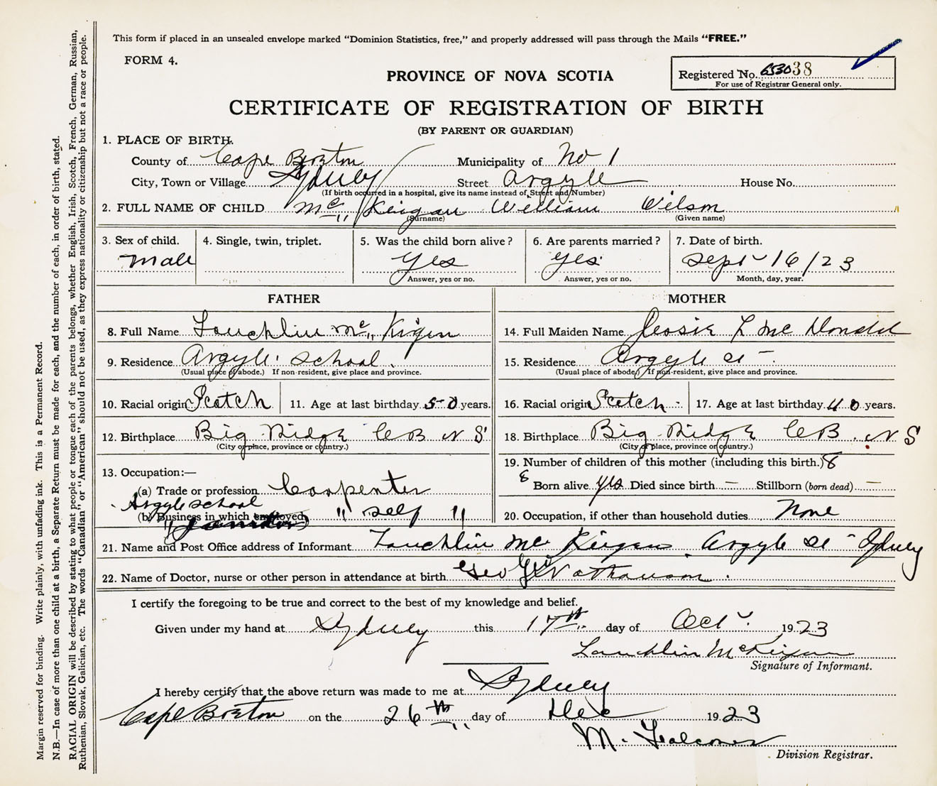 Nova Scotia Archives — https://archives.novascotia.ca/vital-statistics/birth/?ID=441507