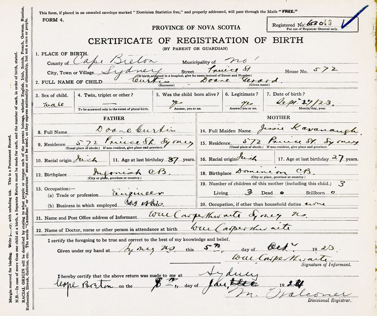 Male Birth Registration: Year: 1923 number: 65300046