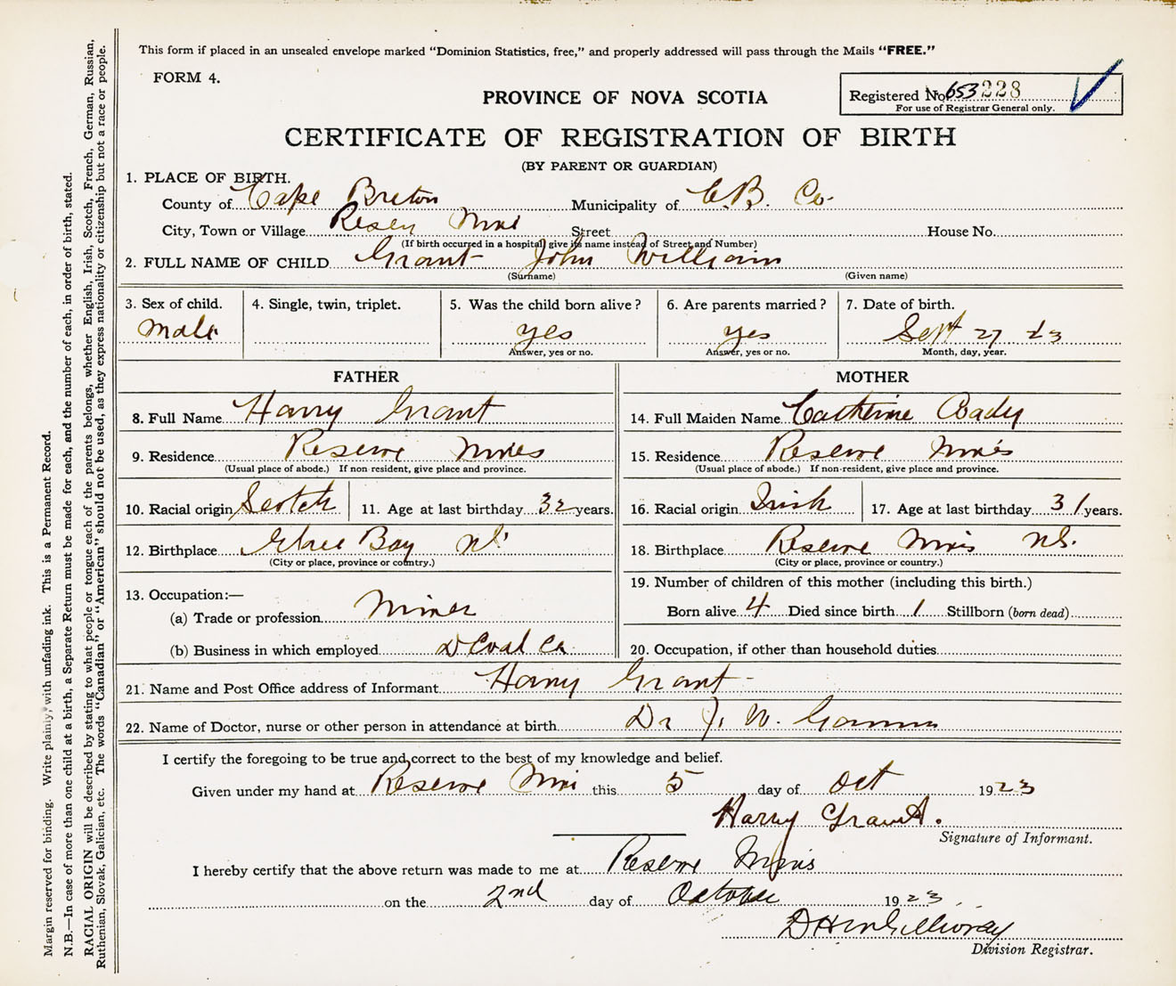 Male Birth Registration: Year: 1923 number: 65300228