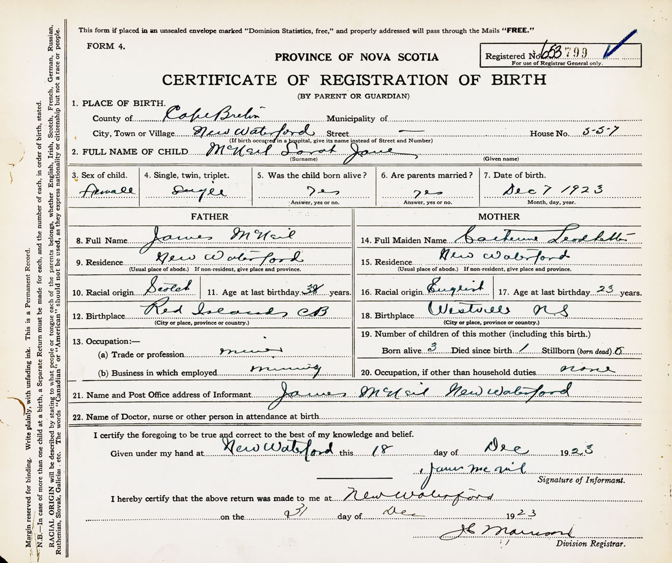 Nova Scotia Archives — https://archives.novascotia.ca/vital-statistics/birth/?ID=442263