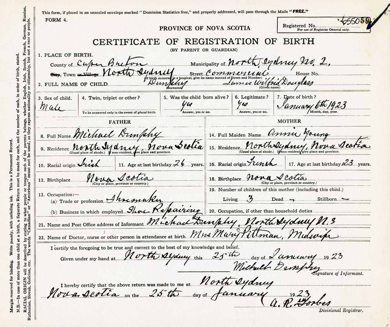 Male Birth Registration: Year: 1923 number: 65500059